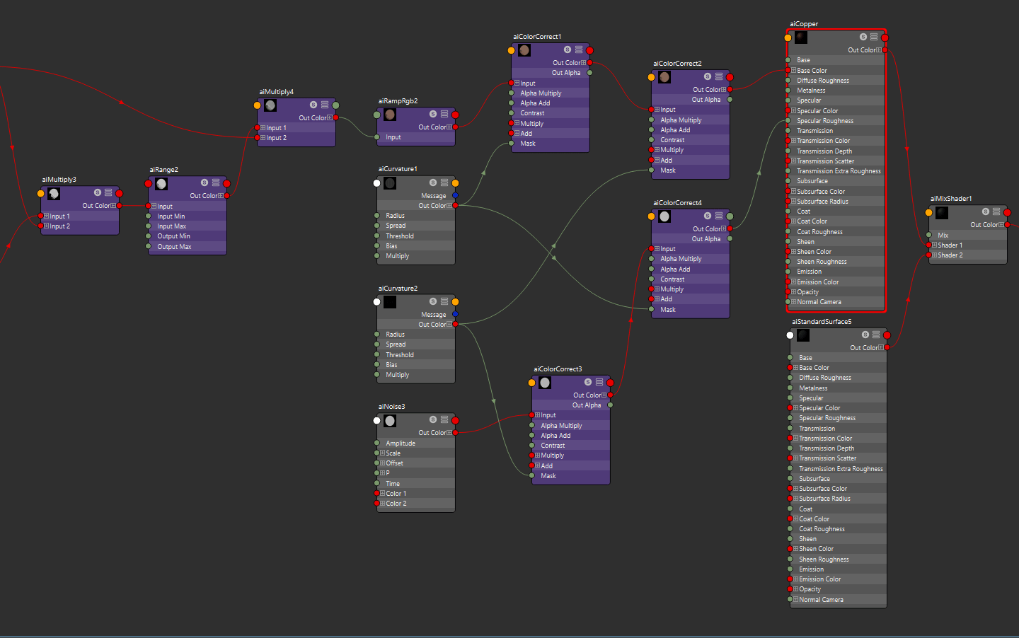 Procedural shading to create the patina material in Maya and Arnold renderer.