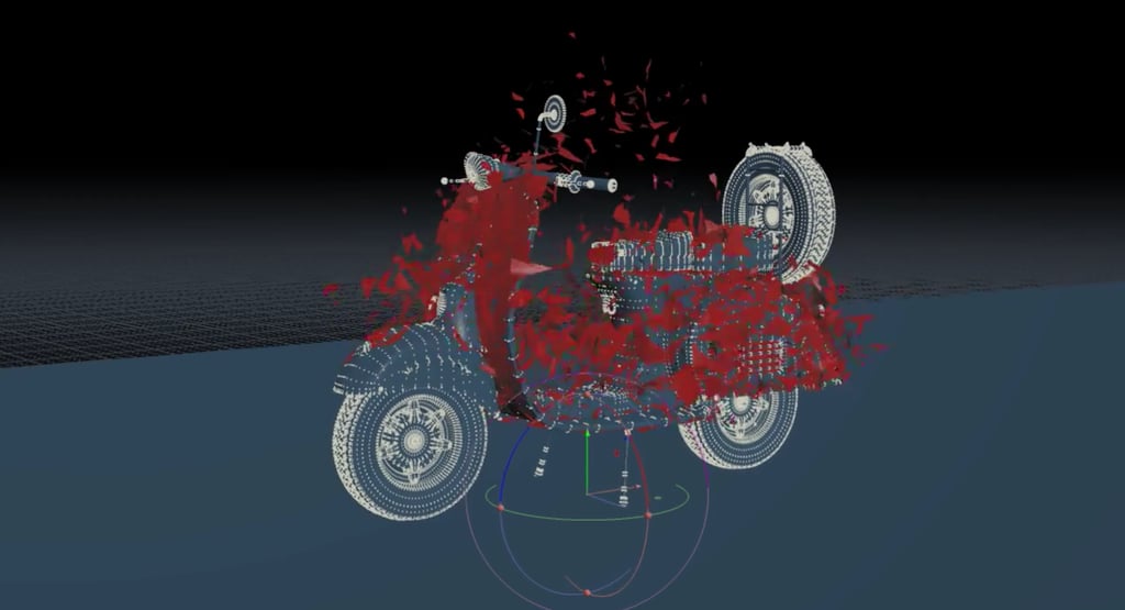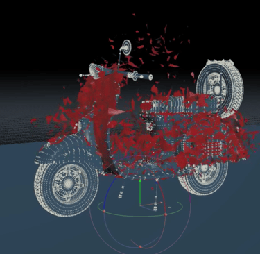 Also, because mentors suggest us let the two period of Vespa look different. Therefore, I will also add the disintegration particle effect to do the transition with Vellum Peeling Effect.
